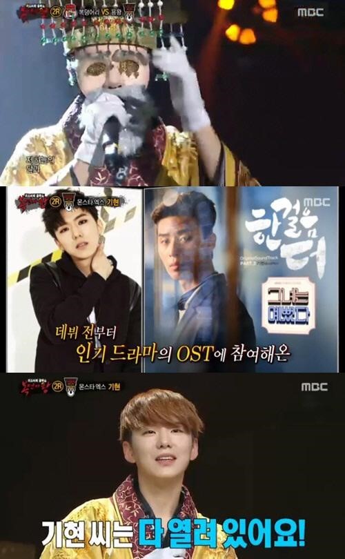 기현은 3일 오후 방송된 MBC 예능프로그램 '일밤-복면가왕'에 '내가 용왕이라고 전해라'라는 닉네임으로 나서 김건모의 '서울의 달'을 애절하고 부드러운 목소리로 완벽히 소화해내며 관객들의 탄성을 이끌어냈다.