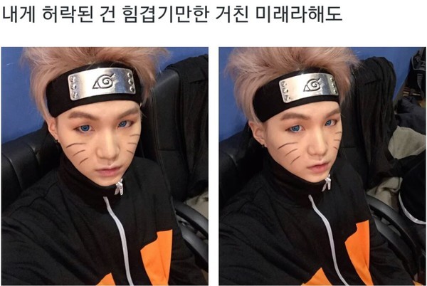 과거 한 온라인 커뮤니티에는 '방탄소년단 슈가 나루토 코스프레'라는 제목이 달린 사진이 올라와 화제가 됐다.