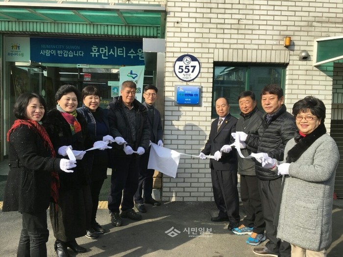 경기 수원시 권선구 세류3동은 4일 단체장 및 주민 등 30여명이 참석한 가운데 2016년 수원안전마을 선정 현판식을 진행했다. 사진은 행사에 참석한 관계자들이 기념촬영을 하는 모습.(사진제공=권선구청)