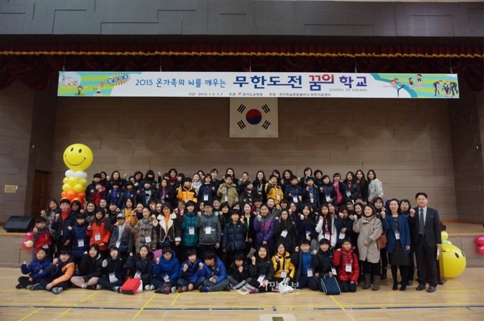 경기학습종합클리닉 부천거점센터는 이달 4~7일 부천·안양과천·광명지역의 초·중학생을 대상으로 '온가족의 뇌를 깨우는 무한도전 꿈의학교'를 운영한다. 사진은 4일 교육에 참석한 관계자들이 기념촬영을 하는 모습.(사진제공=부천교육지원청)