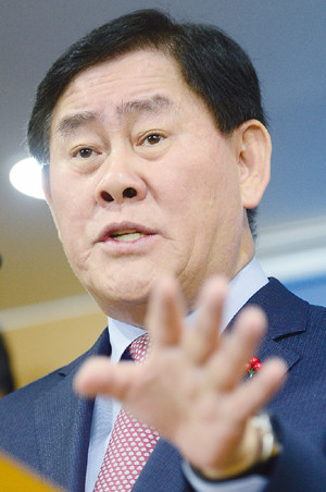 최경환 경제부총리 겸 기획재정부 장관이 5일 오후 서울 종로구 정부서울청사에서 열린 누리과정 관련 긴급 관계부처 합동브리핑에 참석해 취재진 질문에 답하고 있다.