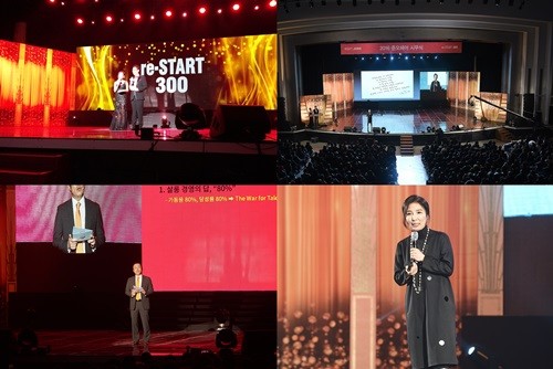 5일 오전 이화여대대강당에서're-start 300'이라는 주제로 열린 이번 시무식에는 협력업체 임직원 200여명, 중국 광둥성, 저장성,탕산시 등지에서 온 외빈과 전 지점 2500명의 준오헤어 임직원들이 참여했다.