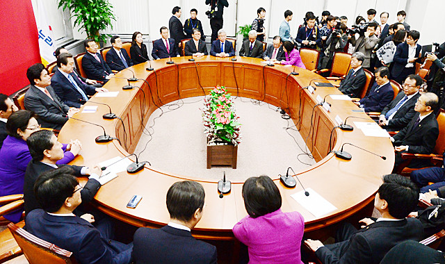 6일 오후 서울 여의도 국회에서 김무성 새누리당 대표 주재로 북한 핵실험 관련 긴급대책회의가 열리고 있다. 북한 조선중앙TV는 이날 낮 12시30분 특별 중대 보도를 통해 “첫 수소탄 시험이 성공적으로 진행됐다”고 밝혔다.