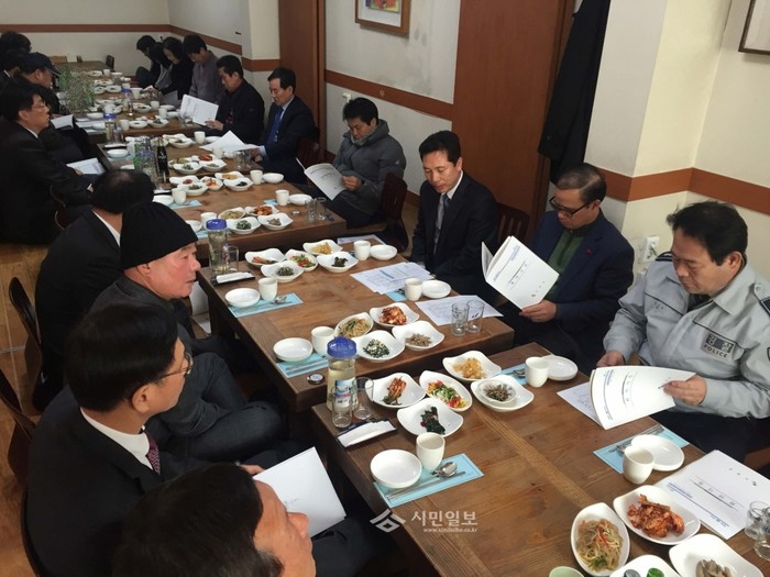 지난 6일 경북 구미시 도량동에서는 도량새마을금고 주관으로 '2016년 도량동 기관·단체장 신년교례회'를 진행했다. 사진은 행사에 참석한 관계자들이 관련 책자를 보며 대화를 나누는 모습.(사진제공=구미시청)