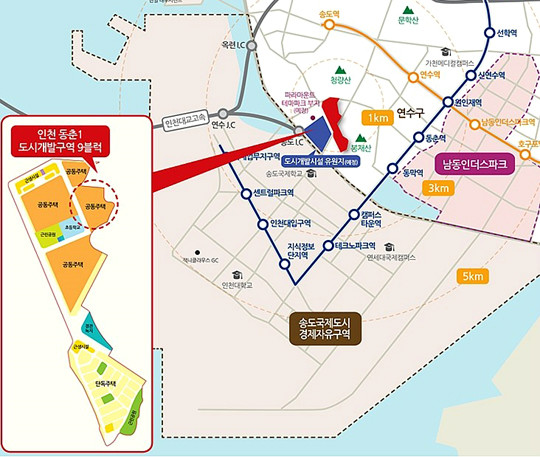 동춘1구역 도시개발사업은 총면적 12만3천여평으로 앞으로는 송도국제도시와 서해바다, 그리고 인천대교가 위치하고, 뒤쪽에는 청량산과 봉재산이 위치하고 있으며, 아파트 3000여 세대와 단독필지가 예정되어 있고, 초등학교와 근린공원, 근린상가 등 생활에 필요한 모든 것을 갖춘 도시개발사업으로 추진된다. 인천 연수구 동춘동 도시개발사업은 향후 송도와 함께 지역을 대표하는 주거지가 될 것으로 예상되고 있다.