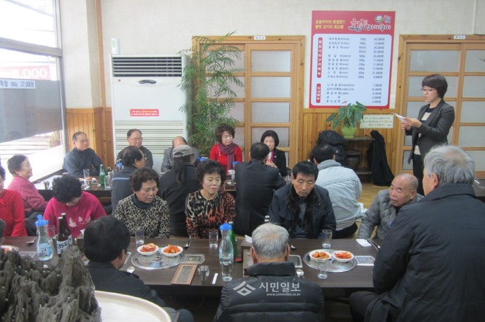 경기 안산시 안산동은 최근 지역내 음식점에서 기관 단체장과 경로당 회장 및 총무를 초청해 새해 첫 '경로당 간담회'를 실시했다. 사진은 행사에 참석한 관계자들이 간담회를 진행하는 모습.(사진제공=안산시청)