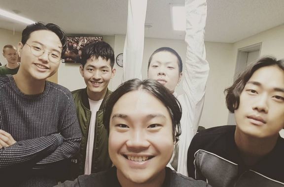 사진 속 유재환은 혁오 멤버 네명 사이에서 환하게 웃고 있다.