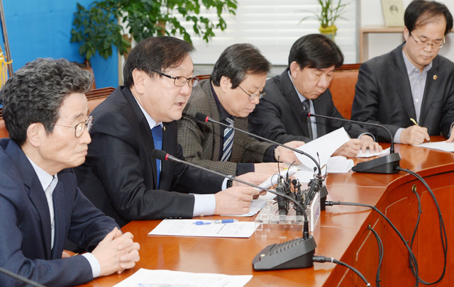 12일 서울 여의도 국회에서 열린 더불어민주당 누리과정대책특위 1차회의에서 김태년 위원장이 모두발언을 하고 있다. 누리과정대책특위는 보육대란을 빚고 있는 누리과정 예산편성 문제와 관련해 대정부 공세 수위를 높이고 구체적인 예산 대책을 마련하기 위해 구성됐다.