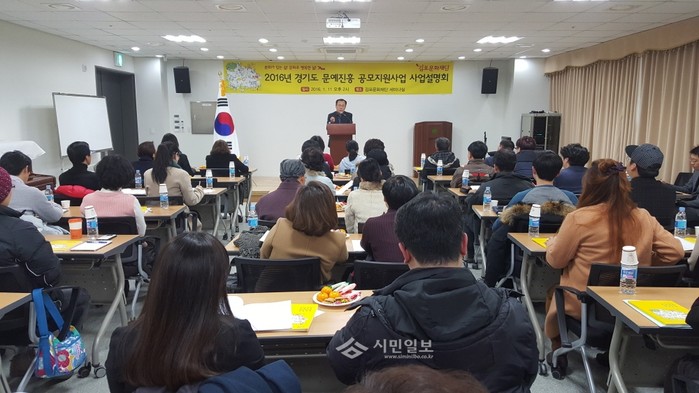 지난 11일 경기 김포시에 있는 (재)김포문화재단이 주최한 '2016년 문예진흥 공모지원 사업설명회'가 김포아트홀 세미나실에서 46개 단체 50여명이 참석한 가운데 성황리에 개최됐다.(사진제공=김포문화재단)