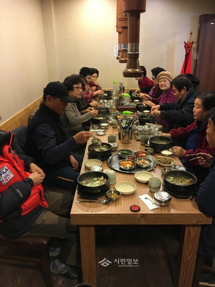 지난 13일 경기 동두천시 생연2동에 위치한 동동갈비는 지역내 국민주택 경로당 노인 20명을 초청해 갈비탕을 제공했다. 사진은 행사에 참석한 노인들이 식사를 하는 모습.(사진제공=동두천시청)