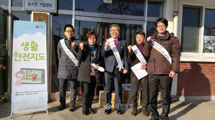 지난 13일 경기 여주시는 능서면 복지회관에서 시청 공무원과 유관기관 및 단체 등 40여명이 참여한 가운데 '안전문화 캠페인'을 실시했다. 사진은 원경희 시장(가운데)과 관계자들이 기념촬영을 하는 모습.(사진제공=여주시청)