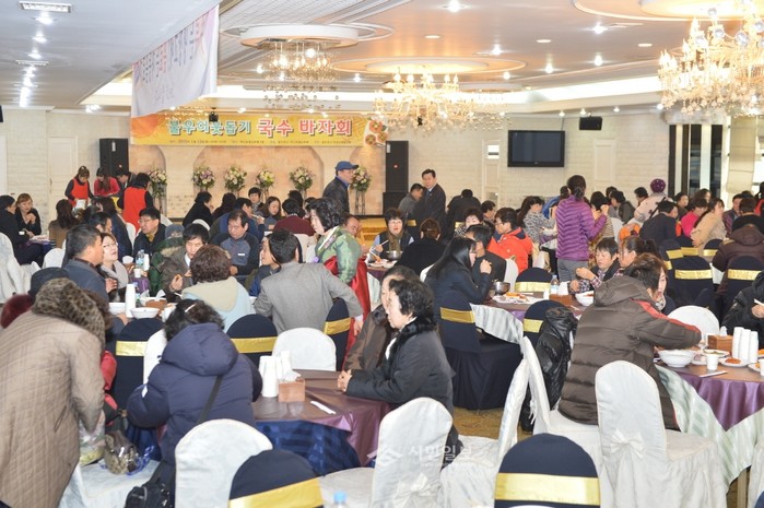 지난 14일 경기 동두천시여성단체협의회는 생연동 소재 농협하나로웨딩홀 3층에서 '사랑의 국수 바자회'를 진행했다. 사진은 행사에 참석한 관계자들이 식사를 하는 모습.(사진제공=동두천시청)