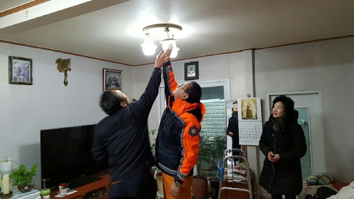 지난 15일 서울 영등포소방서 소방공무원과 의용소방대원들이 신길동 일대 홀몸 중증장애인들을 방문해 한파피해 선제적 대응을 위해 119방문 서비스 등 밀착 안전점검을 실시했다.(사진제공=영등포소방서)
