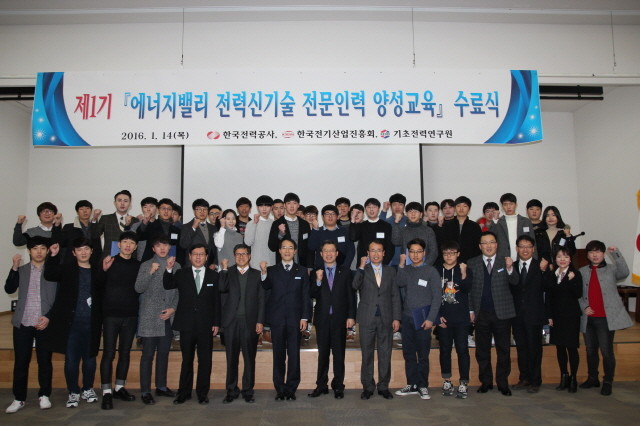 [시민일보=여영준 기자]한국전력(사장 조환익)은 지난 14일 빛가람 본사에서 한국전기산업진흥회, 기초전력연구원과 공동으로 '제1기 에너지밸리 전력신기술 전문인력 양성교육' 수료식을 개최했다.