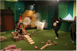 두 번째 이야기방 '아기 돼지 삼형제'는 수학적인 감각과 공간적 개념의 발달을 도와준다. 직접 볏짚과 나무, 벽돌 모형의 블록을 이용하여 상상 속 집을 만들고, 울타리 등을 쌓는 놀이를 하게 된다. 이를 통해 동화 속 주인공과 같은 행동과 놀이를 하면서 이야기 속에 들어온 듯한 느낌을 갖게 된다.