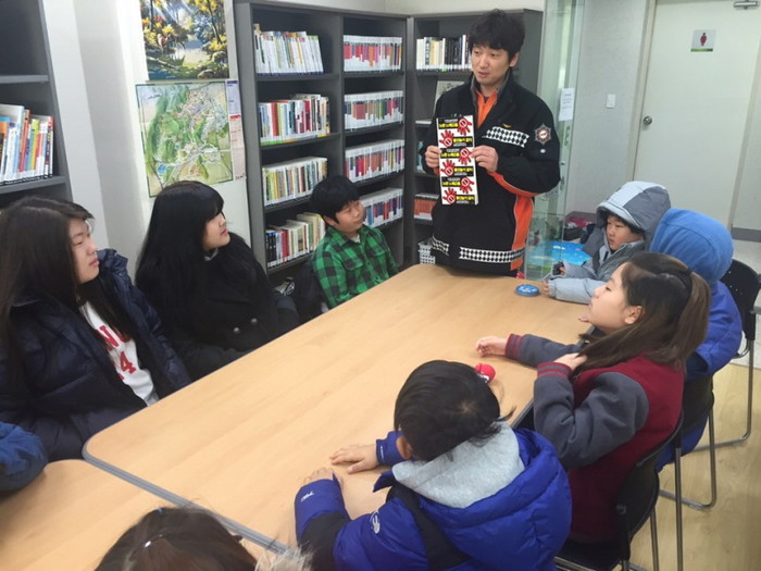 19일 경기 군포소방서는 군포시 당동에 소재한 삼성마을 1단지 입주민 학생들과 관계자를 대상으로 소방안전교육을 실시했다. 사진은 교육이 진행 중인 모습.(사진제공=군포소방서)