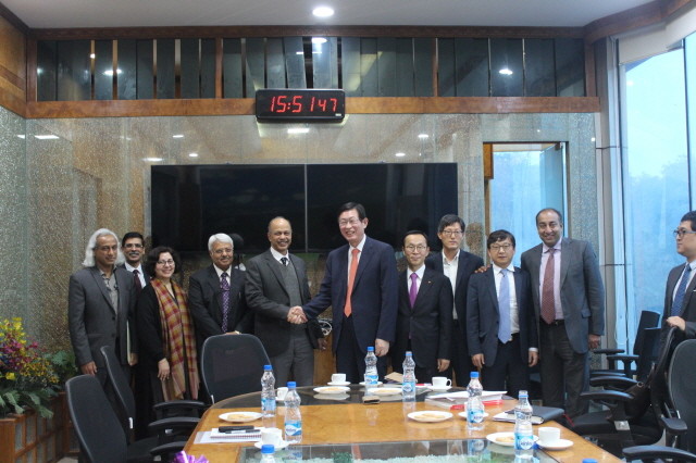 | ▲ 인도 전력부 푸자리 차관(왼쪽부터 다섯번째), 한전 조환익 사장(사진 왼쪽부터 여섯번째) | ||
