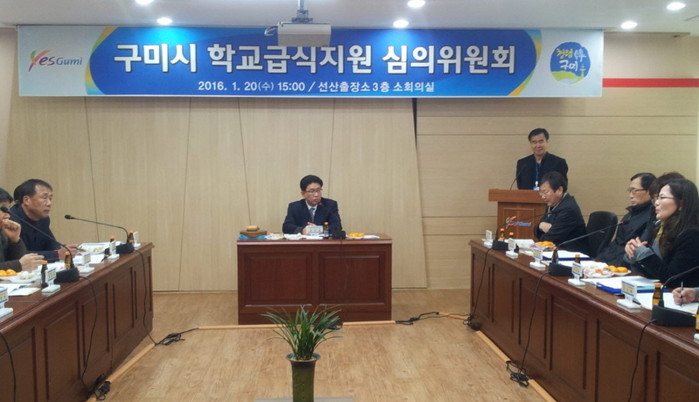 지난 20일 경북 구미시는 선산출장소 소회의실에서 학교급식 지원 심의위원 15명과 관계자들이 참여한 가운데 ‘2016년도 학교급식 지원 심의위원회’를 개최했다.(사진제공=구미시청)