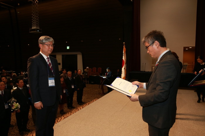 지난 21~22일 전남도교육청은 여수 엠블호텔에서 '제13회 전국 100대 교육과정 우수학교, 우수사례 발표회'를 열었다. 사진은 21일 이영 교육부 차관(오른쪽)이 관계자에게 표창장을 수여하는 모습.(사진제공=전남도교육청)