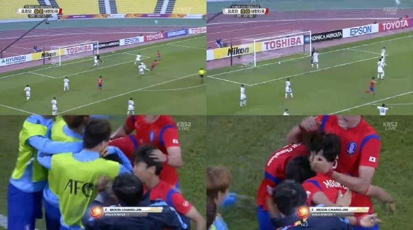 대표팀의 계속된 공격은 문창진에게서 결실을 맺었다. 문창진은 전반 22분 페널티 지역 중앙에서 시도한 오른발 슈팅이 골로 연결됐다.