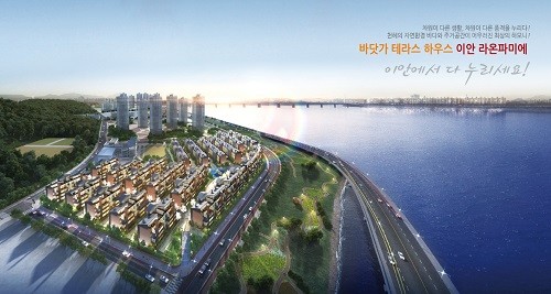 이러한 때, 인천 논현동에 바닷가 테라스하우스 ‘이안 라온파미에’가 2015년 12월 22일 모델하우스를 오픈해 화제다. 인천 논현 ‘이안 라온파미에’ 테라스하우스는 지하1층~지상4층, 전세대 남향배치 전용면적기준 100~115㎡ 298세대로 구성된 희소성 높은 바닷가 테라스하우스 단지로 전용률이 85%선, 대지지분이 분양평수에 달하며 전세대 테라스제공과 복층형 공간 활용이 가능한 평면이 특징이다.