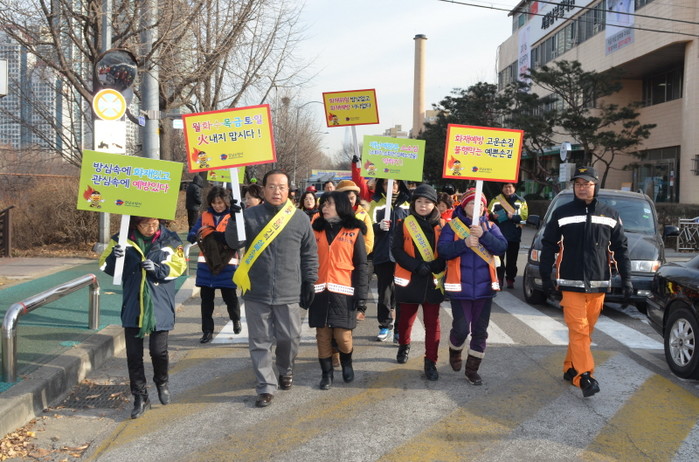 지난 22일 강남소방서 소방공무원, 의용소방대원 205여명은 개포동 재건마을 일대에서 화재가 자주 발생하는 겨울철을 맞아 '화재예방 및 안전사고 예방을 위한 겨울철 불조심 캠페인'을 진행했다.(사진제공=강남소방서)