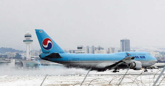 25일 오후 제주국제공항 항공기 운항이 사흘만에 재개돼 김포행 대한항공 여객기가 활주로를 달리고 있다.다. 23일~25일까지 제주에 발이 묶여있는 인원은 약 9만명에 육박하는 것으로 파악됐다.