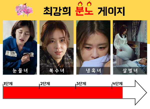 평범하고 소소한 일상이 삶의 행복이었던 신은수가 남편의 횡령 사건에 가담했다는 누명을 쓰고 '눈물녀'가 된 모습부터 딸의 사고 원인을 제공한 강일주에게 더욱 악독하게 되갚아주는 '복수녀'와 거짓 눈물을 흘리는 '냉혹녀'의 모습을 거쳐, 강일주의 악행을 알고도 묵인하는 강석현에게 분노하면서 '살벌녀'가 된 과정을 일목요연하게 정리하고 있다.