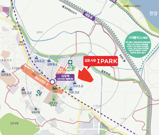‘김포 사우동 아이파크’가 위치한 사우동은 김포시 구도심 지역으로 김포시청, 사우문화체육광장, 법원, 세무서 등 행정기관과 이마트, CGV, 은행, 병원, 한강 시네폴리스(예정) 등 생활에 필요한 인프라가 잘 갖춰져 있다.