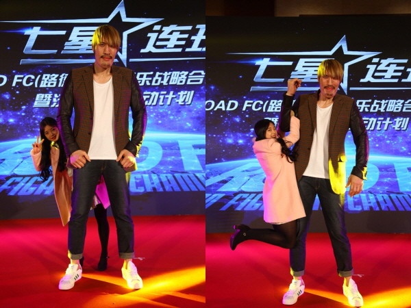 지난 5일 중국 베이징 호텔에서 칠성연주 글로벌 스포테인먼트 전략제휴 발표회 및 인터넷 기반 엔터테인먼트 IP 시동행사가 진행됐다. 이날 행사에는 로드FC 소속 파이터인 최홍만과 이예지가 참석했다. 두 사람은 이번 행사를 통해 처음 만났다.