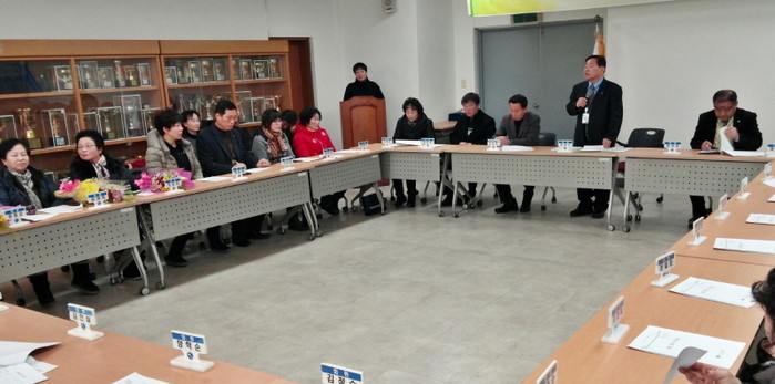 지난 26일 경북 구미시 상모사곡동 자연보호협의회는 주민센터 2층 회의실에서 ‘2016년 상모사곡동 자연보호협의회 정기총회’를 개최했다. 사진은 행사에 참석한 관계자들이 회의를 하는 모습.(사진제공=구미시청)