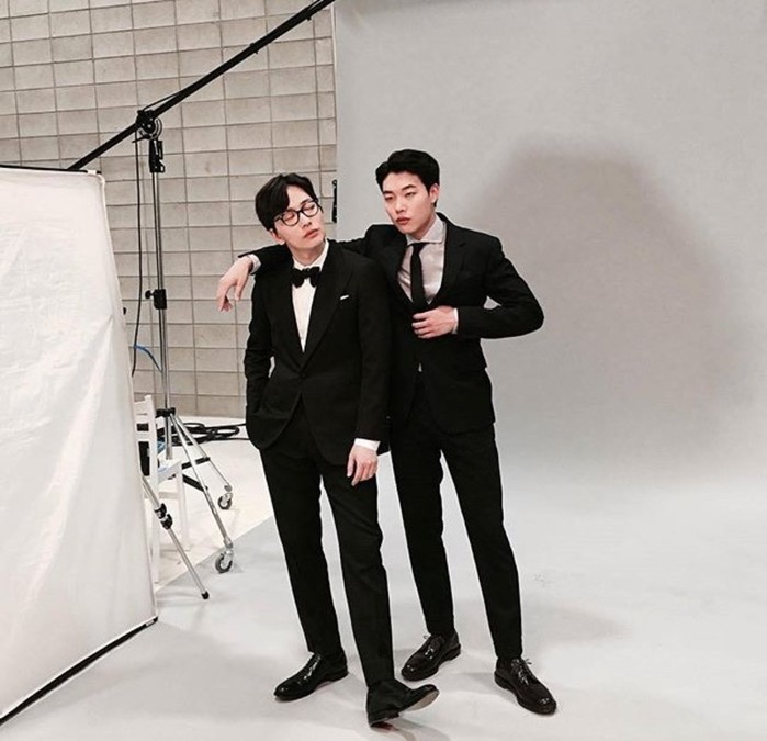 게시물 속 사진에는 면도기 촬영 중인 이동휘와 류준열의 모습이 담겨 있다. 두 사람은 블랙 컬러의 수트를 입고 멋스러운 포즈를 취하고 있다.