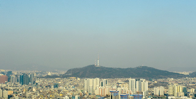 한파가 물러나고 미세먼지가 전국 곳곳을 덮친 27일 오후 서울 영등포구 여의도 63스퀘어 전망대에서 바라본 도심 하늘이 희뿌옇게 보이고 있다.