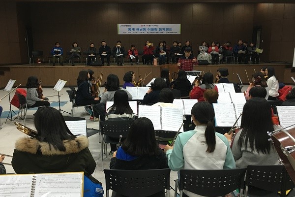 | ▲ 사진, 지난 26~28일, 해남우수영 유스호스텔에서 열린 해남동초 오케스트라 동계 어울림 음악 캠프 연주회 모습 | ||