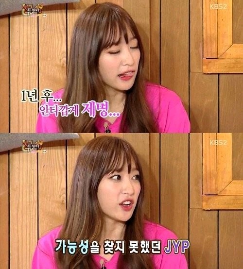 하니는 과거 방송된 KBS2 '해피투게더3'에 출연해 "고등학교 1학년 때 JYP 엔터테인먼트 연습생을 했었는데 1년 후 제명됐다. 가능성을 못 보신 것 같다"고 털어놨다.