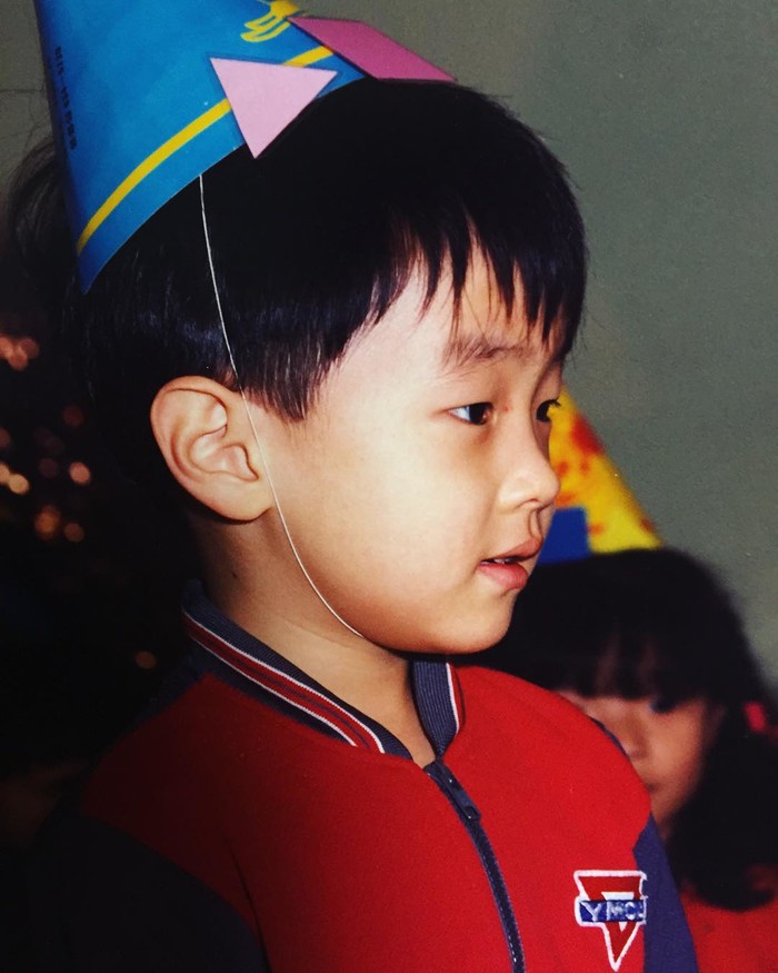 그는 과거 자신의 어린 시절 고깔모자를 쓰고 있는 귀여운 사진을 올려 관심을 받았다.