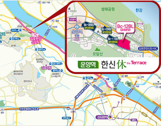 김포한강신도시 ‘운양역 한신휴플러스 더테라스’가 들어서는 운양지구는 인프라가 잘 갖춰져 한강신도시 내에서 인기가 가장 높고, 매매가도 3.3㎡당 1,300만원에 이른다.