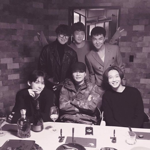 공개된 사진 속 양현석은 위너 멤버들과 함께 식사를 하기 전 다정한 포즈를 취한 채 카메라를 응시하고 있다. 이들의 친근한 분위기가 보는 이들의 눈길을 사로잡았다.