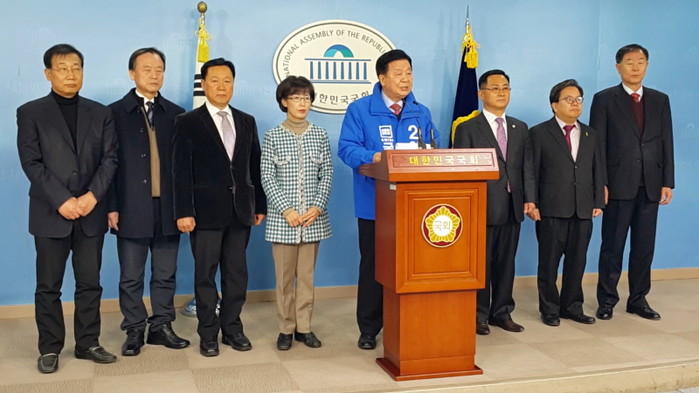 | ▲ 이근식 후보(가운데)가 국회 정론관에서 출마를 선언하고 있다. | ||