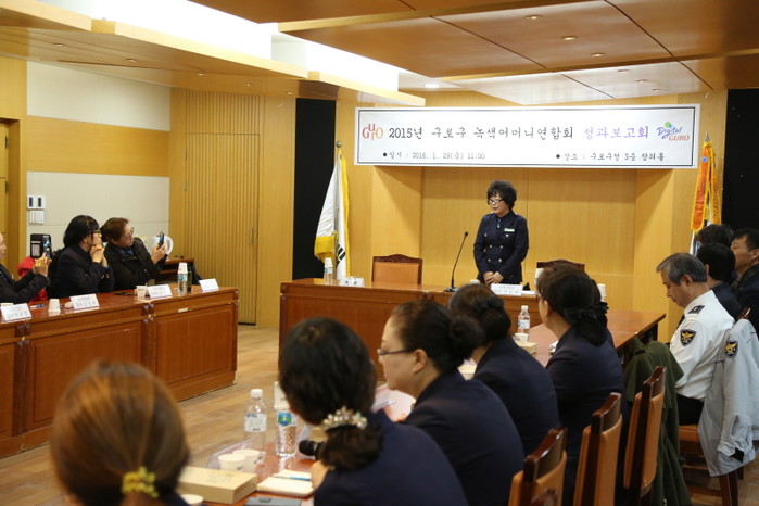최근 서울 구로구가 구청 창의홀에서 '2015년 녹색어머니연합회 성과보고회'를 개최했다. 사진은 보고회에 참석한 연합회 회원들이 지난해 추진 실적을 점검하고 올해 교통 안전에 관한 활동계획을 논의하는 모습.(사진제공=구로구청)