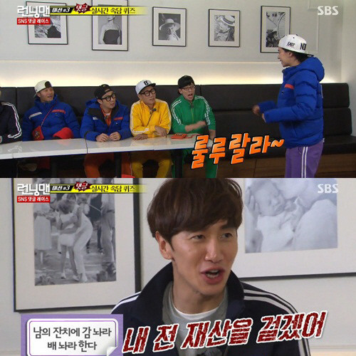 이를 본 이광수는 "무조건 꼴등이다. 내 전 재산을 걸겠다"고 자신만만한 모습을 보여 시청자들의 웃음을 자아냈다.