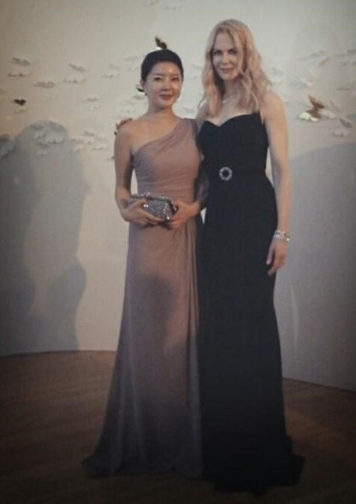 해당 사진 속에는 핑크빛 드레스를 입은 김미나와 블랙 드레스를 입은 니콜 키드먼이 나란히 서서 다정한 포즈를 취하고 있었다.