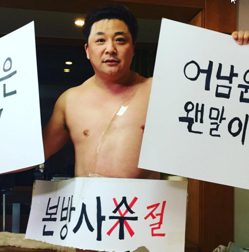 윤정수의 아내 김숙은 자신의 인스타그램에 "'님과 함께' 윤정수 발악. 전체 스텝과 제작진 모두가 마음껏 웃을 수 있게 해준 윤정수 님 감사합니다. 전체 사진 너무 흉악해서 잘랐음"이라는 글과 함께 윤정수의 누드 사진을 공개했다.