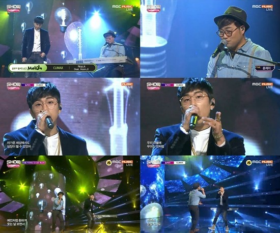 놉케이는 3일 방송된 MBC MUSIC '쇼 챔피언'에 출연해 '클라이막스'를 열창했다.