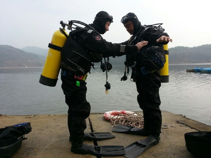 경기 안성소방서는 최근 금광저수지 일원에서 겨울철과 다가오는 해빙기를 위한 수난사고에 대비해 동계 수난구조 특수훈련을 실시했다. 사진은 훈련에 참가한 관계자들이 수난구조장비 조작법 및 사용요령을 배우는 모습.(사진제공=안성소방서)