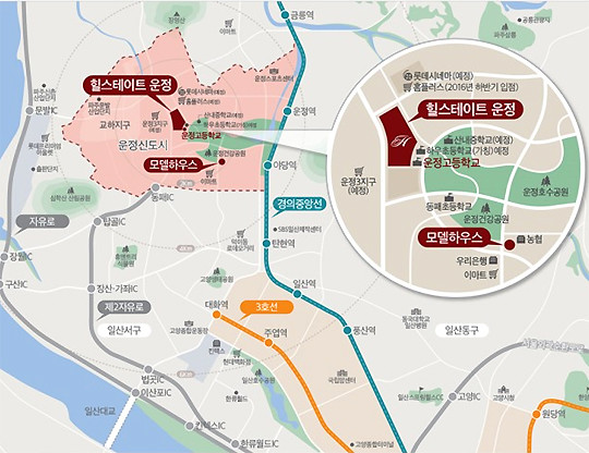 ‘힐스테이트 운정’은 운정신도시 내에서 희소성이 높은 중소형 평형대 위주로 구성되어 높은 수요가 기대되고 있으며, LG디스플레이, 파주출판단지가 인접하고 있으며, 서울 서북권의 대표적인 신흥 업무지구인 상암지구(569,925㎡규모)와 2018년까지 총 10조원 이상 투자되는 LG디스플레이단지, 파주LCD일반산업단지가 가까워 유망 배후 주거단지로 꼽히고 있다.