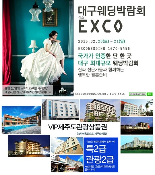 대구웨딩연합회가 주최하고 (주)고구마웨딩이 주관하는 대구웨딩박람회는 국내 3대 대표 웨딩박람회로 예비 신혼부부들의 인기를 누려왔다. 엑스코 사상 최대 규모로 개최되는 이번 결혼박람회에서는 웨딩홀, 허니문, 혼수, 가전 등에 대해 실시간 비교견적 서비스를 제공해 방문객들의 편의를 높였다.