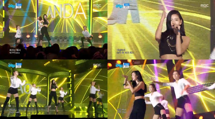 가수 안다가 MBC 음악프로그램 '쇼! 음악중심'에서 싱글 '택시(TAXI)'로 화려한 무대를 꾸몄다.