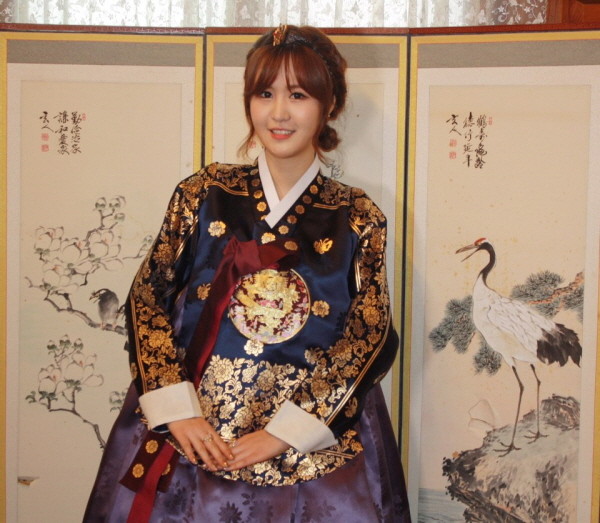 사진 속 윤수현은 학과 까마귀가 그려진 병풍을 배경으로 미소를 짓고 있다. 두 손을 가지런히 모으고, 단아한 미소를 짓고 있는 윤수현의 모습이 기품있어 보인다. 참하고, 복스러운 윤수현의 이미지와 우아한 자태는 조선시대 사극 속 귀부인을 연상시킨다.