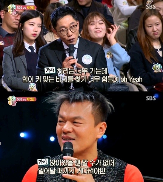 이날 박진영은 "박진영 씨 곡은 경험에서 나온 자작곡이 많다고 했다. 그럼 '어머님이 누구니' 가사를 보면 어떤 생각으로 만들었는지 모르겠다"고 김제동이 말하자 "외모만 보는 건 아니지만 허리가 가늘면서 엉덩이가 큰 여성을 좋아했다. 어릴때부터 그랬다"고 솔직하게 털어놨다.